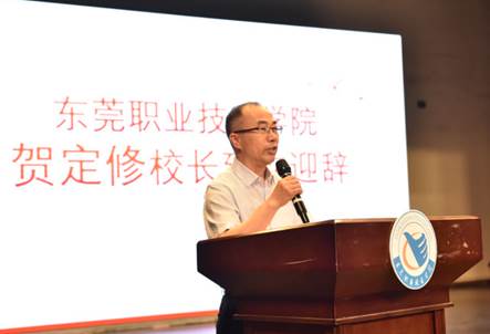 贺定修校长对东莞市商业学校一行到来表示热烈欢迎,他希望今后两校能够保持良好的互动合作关系,持续深化交流协作,实现共赢发展。他对同学们未来的大学生活提出三点殷切希望:一是要涵养大学之“气”,二是要练就过硬之“技”,三是要不忘母校之“情”。