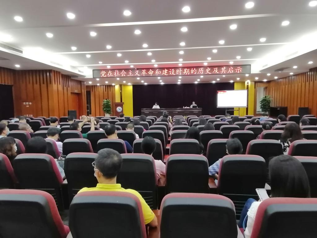 为学习贯彻党的十九届六中全会精神,不断深化对党的百年奋斗的初心使命和重大成就、历史意义和历史经验的认识,结合学校2022年政治理论学习重点内容安排的工作要求,由机关党总支牵头,联合教辅党总支和马克思主义学院党总支于5月19日下午,在行政楼B201会议室共同组织三个党总支全体党员的政治理论集中学习活动,党委副书记、纪委书记蔡东宝同志出席了本次活动。本次学习由马克思主义学院党总支书记李林洪同志主讲,他授课的题目是《党在社会主义革命和建设时期的历史及其启示》。