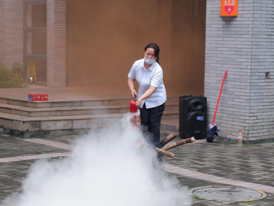 演练以学生宿舍突发火情为背景,通过释放发烟罐模拟火灾场景,宿舍管理员知情后第一时间启动应急预案,按照处置流程迅速开展相关工作。