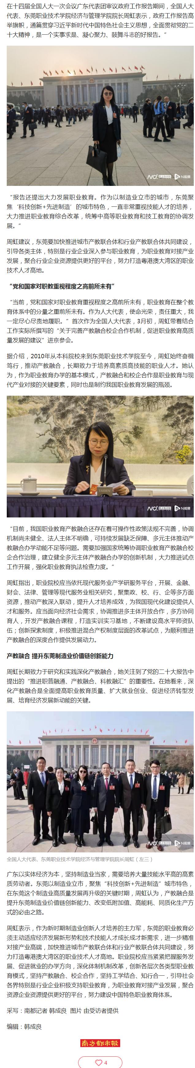 【南方都市报】全国人大代表周虹:东莞要努力打造成大湾区职业技术人才高地