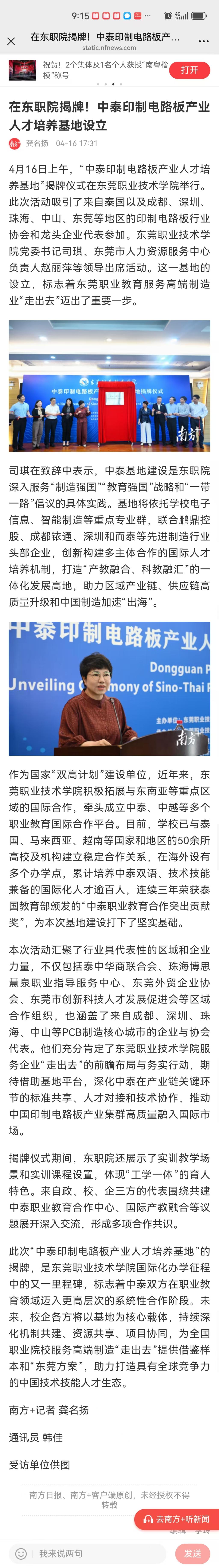 【南方+】在东职院揭牌!中泰印制电路板产业人才培养基地设立